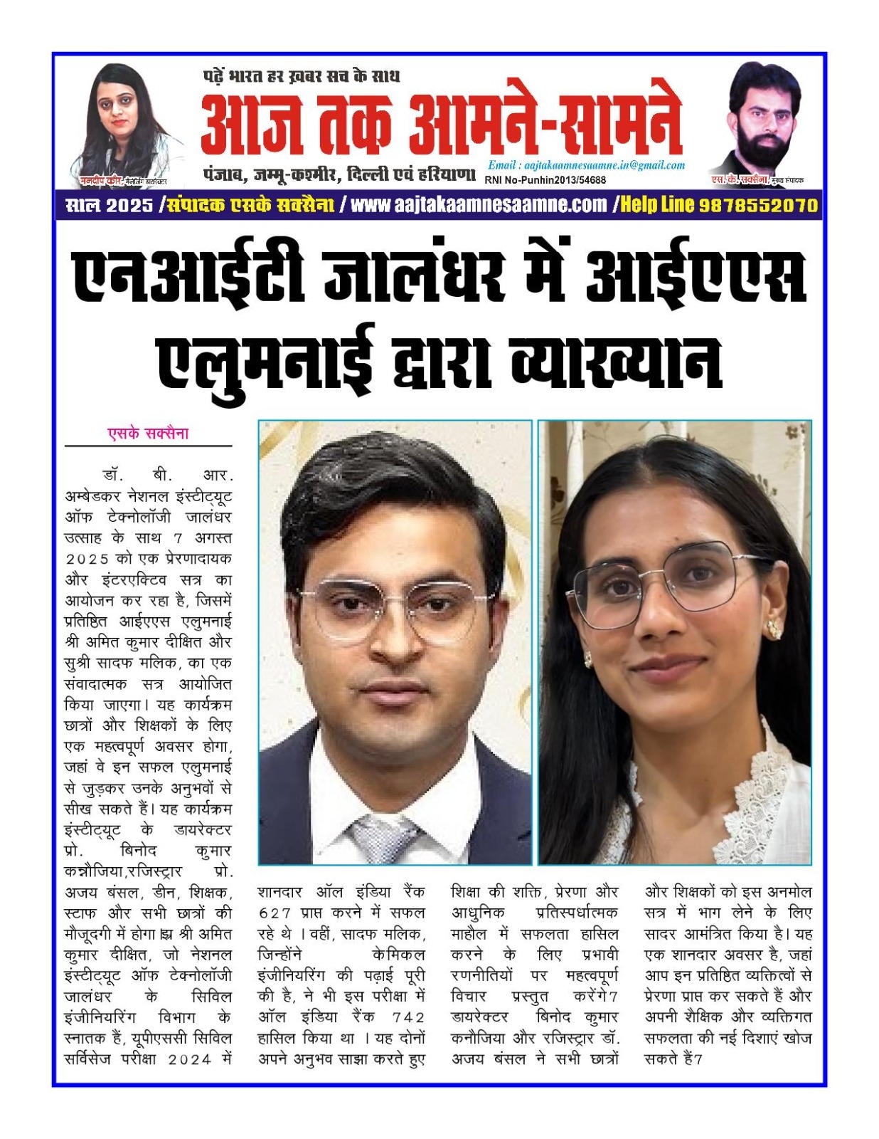 http://localhost/xmlui/handle/1/17| Title: | एनआईटी जालंधर में इंटरएक्टिव सेशन के दौरान आईएएस एलुमनाई ने छात्रों को किया प्रेरित |